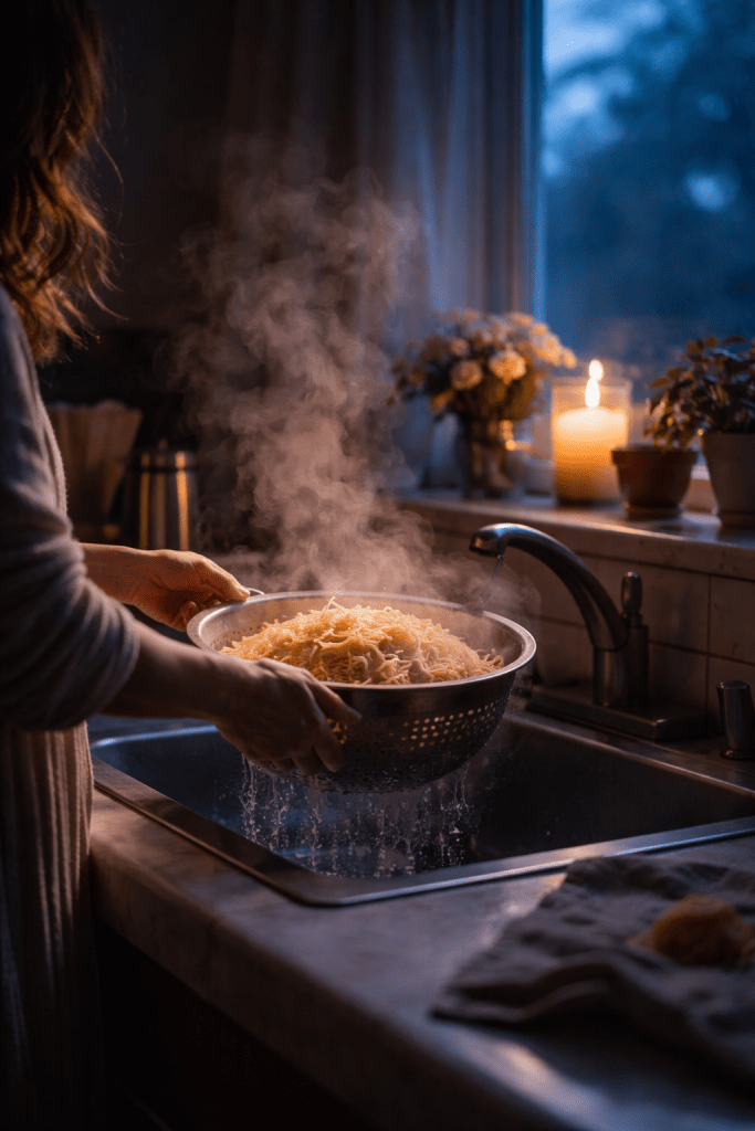 I drain the pasta and the salty steam rises to give me a much needed