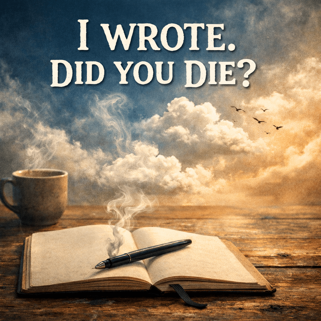 That’s how I’ve been getting myself to the page this week. I drag myself to myself to my big puffy chair, settle in… settle in some more, take a sip of water, a sip of coffee… another sip of coffee, hover my fingers over the keys, another sip of water and I say, “I am going to sit down and write, and no one is going to die.”